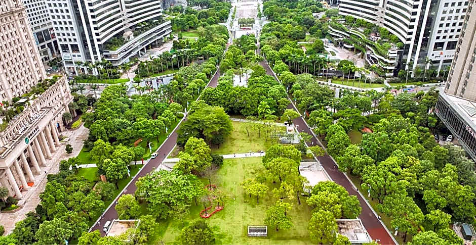 The 45-square-yard room offers stylish décor and complementary modern technology. Features beautiful Huacheng Square garden view. Access to Grand Club Lounge is available.
